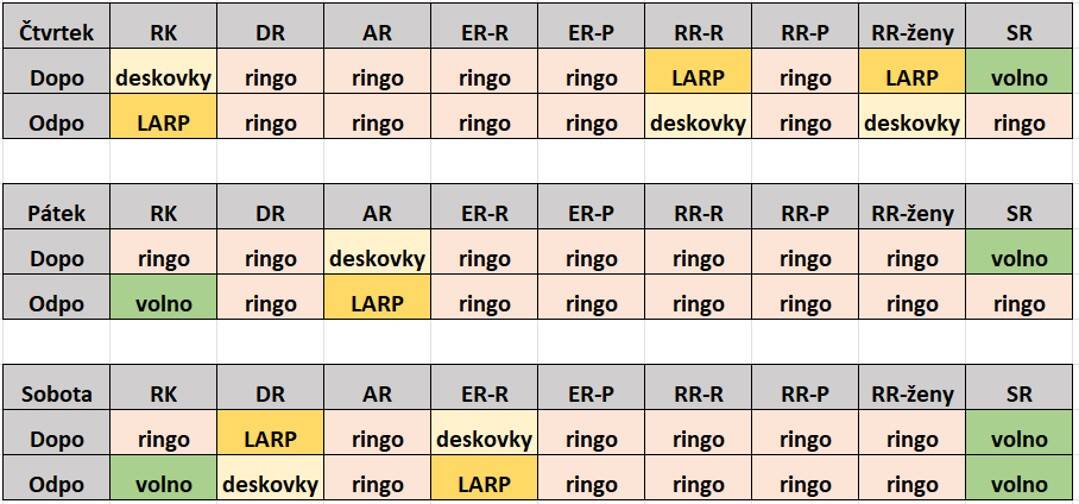 Turnaj v LARPu bude probíhat obdobným způsobem jako loni, podrobnosti včetně přihlašování doplníme. Soutěžit se bude v těchto kategoriích:
